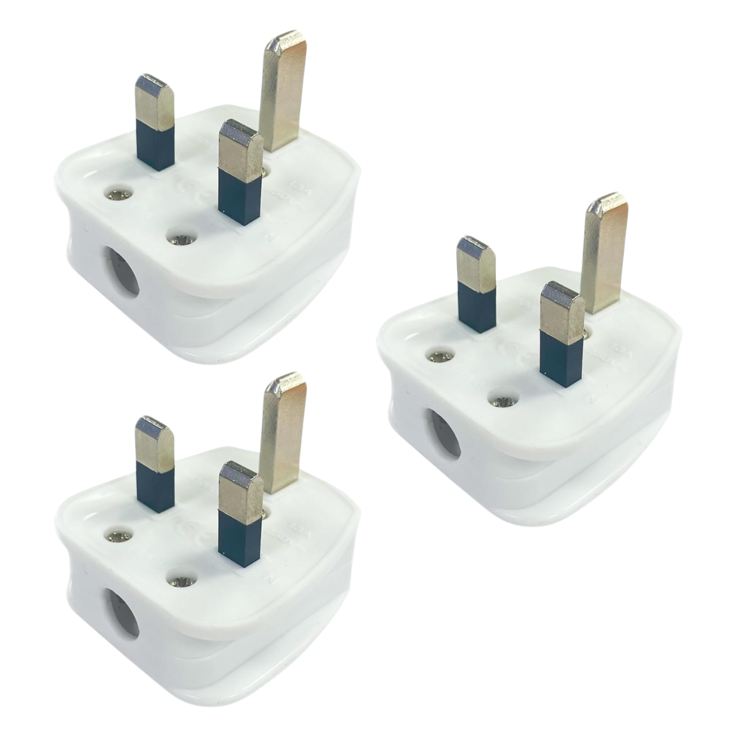STATUS 13A 3‑Pin White Electrical Plug Tops – Pack of 3, BS1363‑Compliant with Cord Grip, CE Certified & Recyclable, Ideal for Home or Office Use, (13APLUG3PK5)